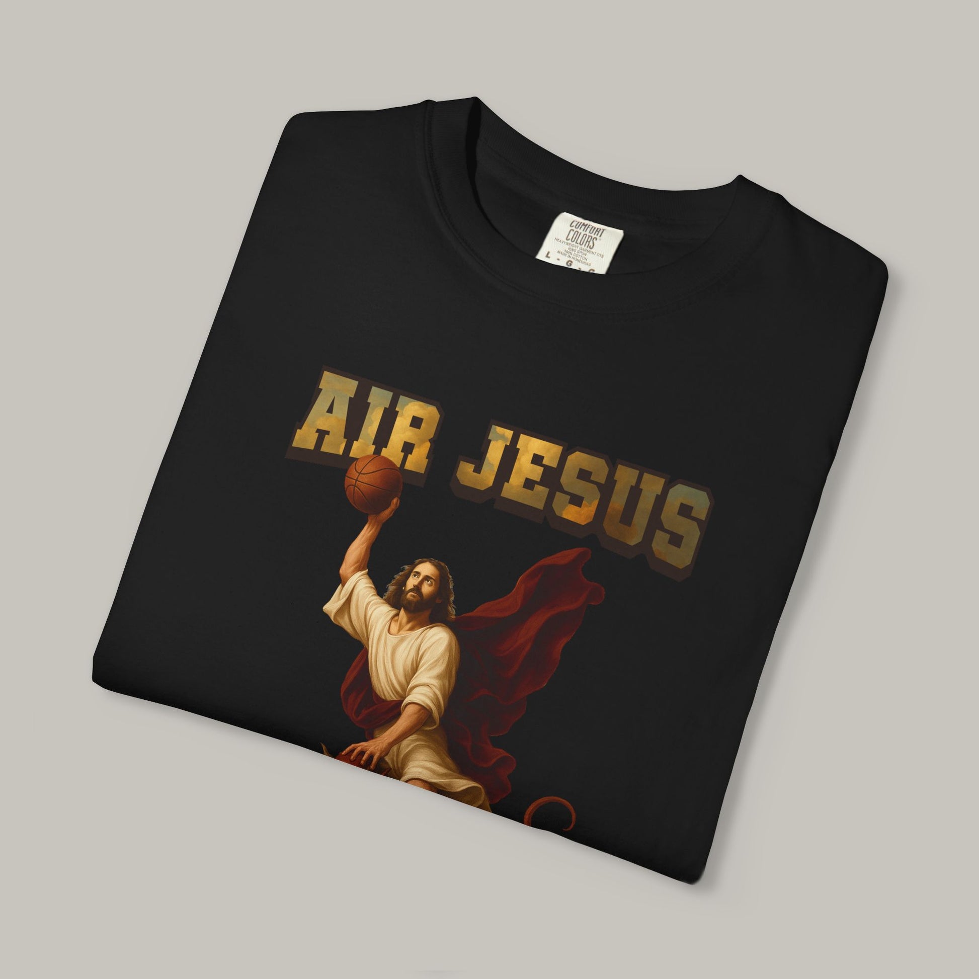 The Jesus Dunking Basketball Clouds Christian T-Shirt takes the iconic Air Jesus design to new heights. Featuring Jesus rising for a slam dunk with letters filled with heavenly clouds, this tee symbolizes victory, ascension, and devotion. It’s the perfect mix of basketball culture, bold streetwear, and faith-inspired art — made to stand out on the court, in the streets, or anywhere you share your belief.