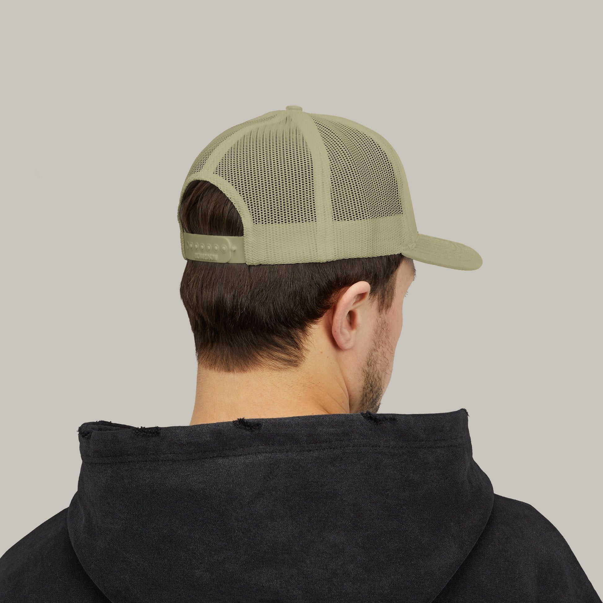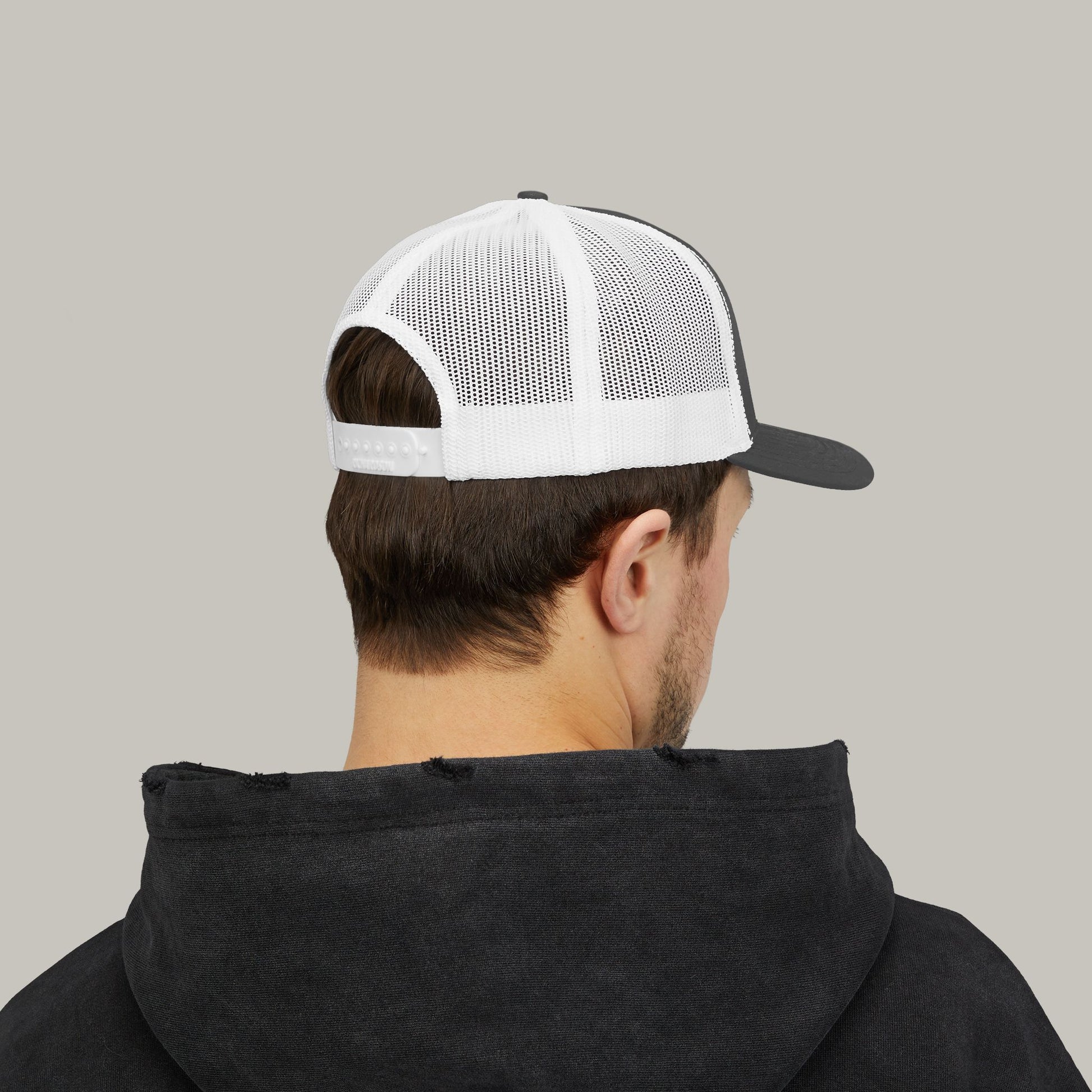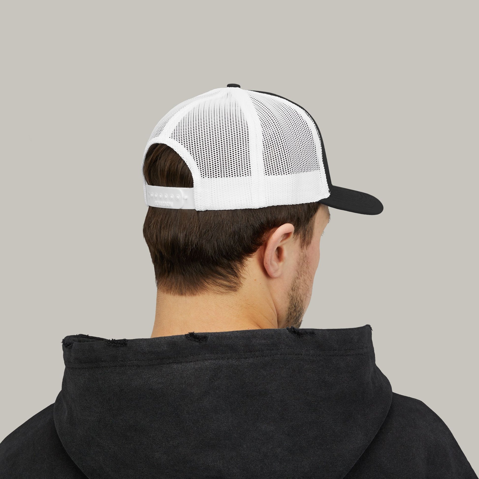 Classic trucker cap with the AirJesus logo embroidered on the front. Inside, a soft pattern of golden clouds reflects faith, clarity, and purpose. Made with breathable mesh panels and an adjustable back for a comfortable fit that carries quiet strength and style.
