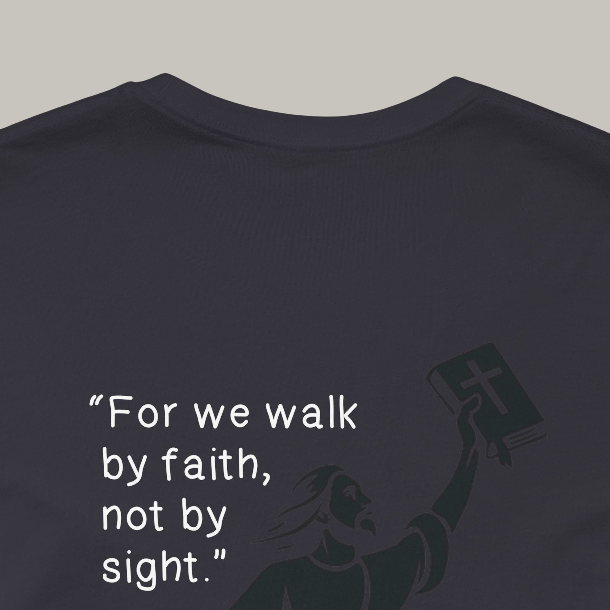 Step into purpose with this unisex tee featuring the powerful words of 2 Corinthians 5:7: